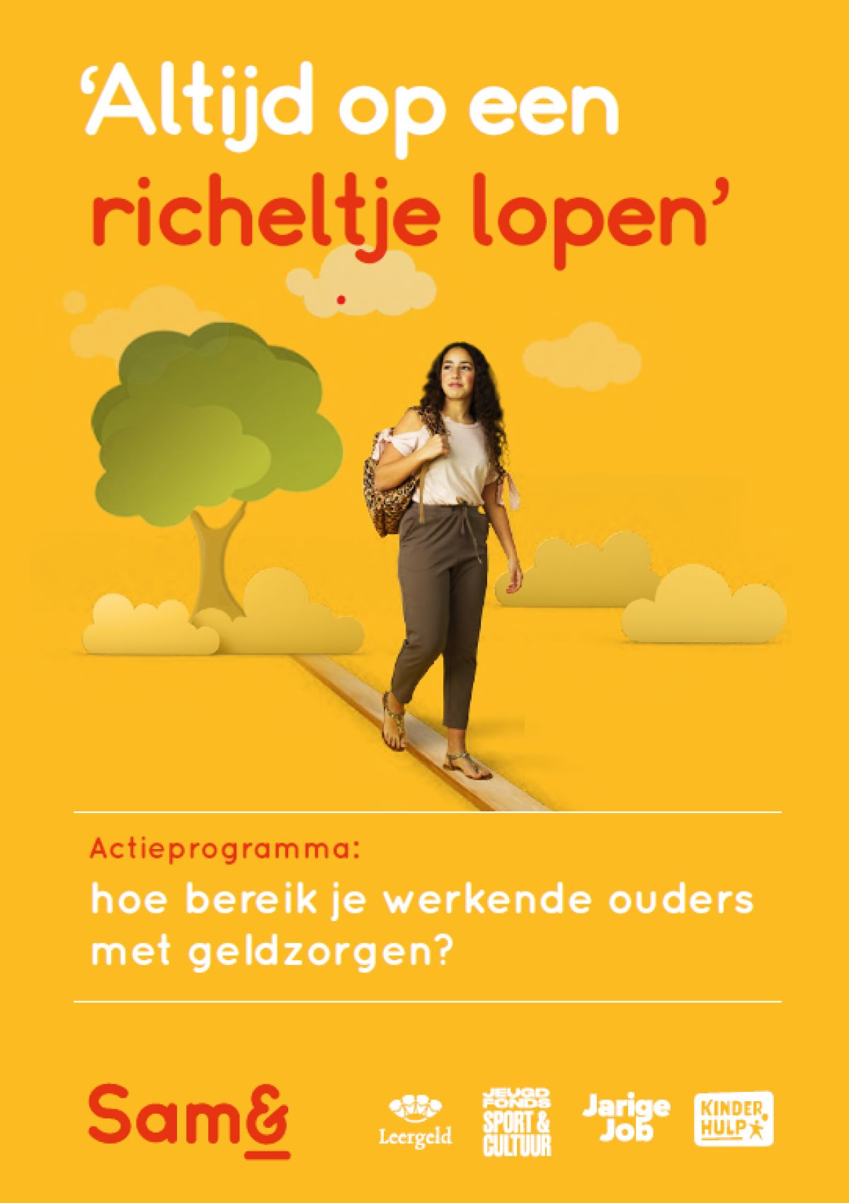 Met subsidie van het Ministerie van Sociale Zaken en Werkgelegenheid (SZW) is vanuit Sam& een project opgezet om het bestaande ondersteuningsaanbod voor werkende ouders beter toegankelijk te maken. Om te weten hoe hun situatie eruit ziet en welke belemmeringen zij ervaren, heeft Sam&werkingspartner Leergeld Nederland de ervaringen van 22 werkende ouders met geldzorgen onderzocht. Dit is gepubliceerd in het Sam& onderzoeksrapport ‘Altijd op een richeltje lopen’. De bevindingen van het onderzoek en gesprekken daarover met uiteenlopende partijen, zoals verschillende maatschappelijke organisaties, gemeenten en werkgevers, hebben geleid tot het concrete actieprogramma en toolkit. De toolkit geeft gemeenten, professionals en werkgevers concrete handvatten om de uitvoeringspraktijk te verbeteren.Het actieprogramma en de bijbehorende toolkit zijn te downloaden op onze Leergeld Nederland website via: www.leergeld.nl/publicaties en op de website van Sam& via: www.samenvoorallekinderen.nl/werkende-ouders.